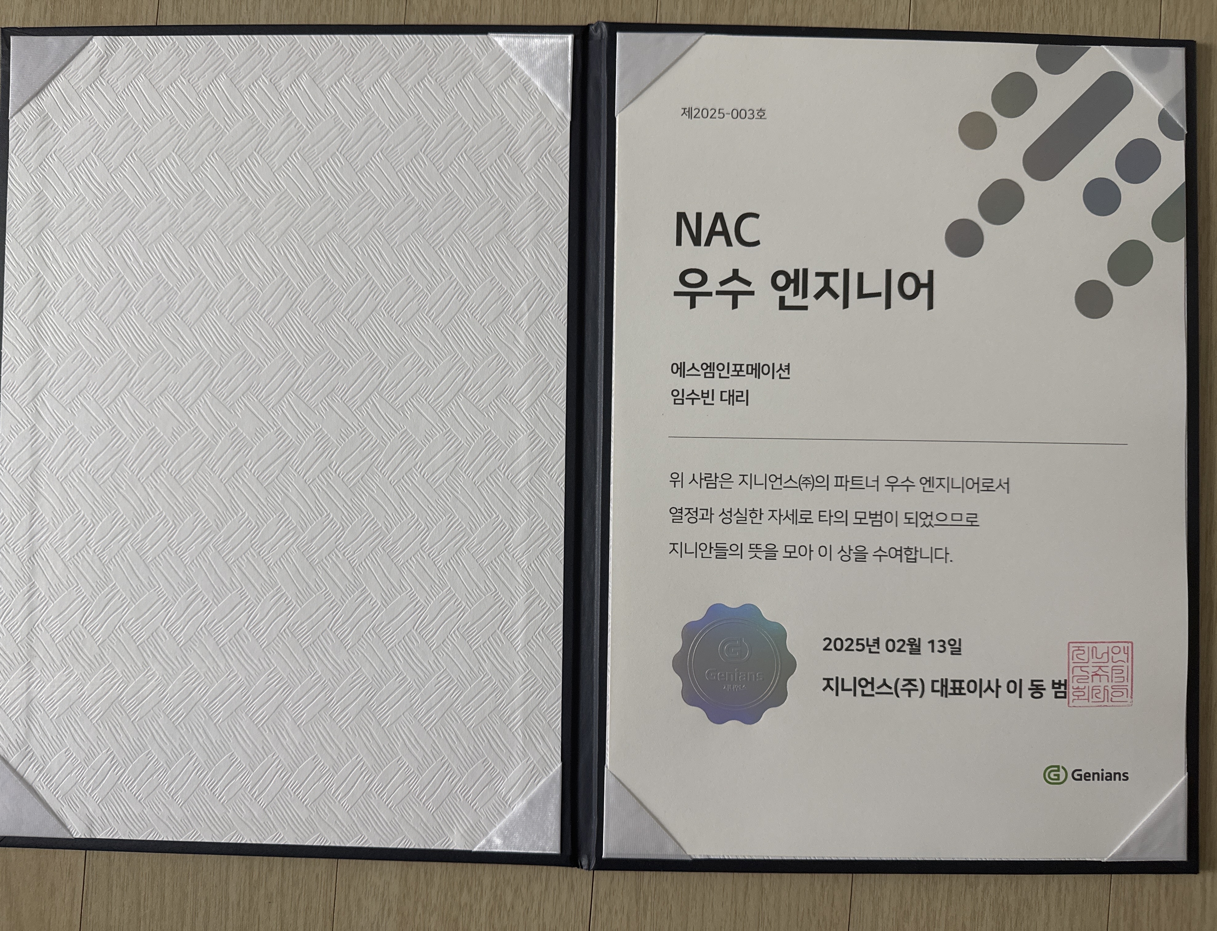 에스엠인포메이션, 지니언스 우수 엔지니어 표창 수상